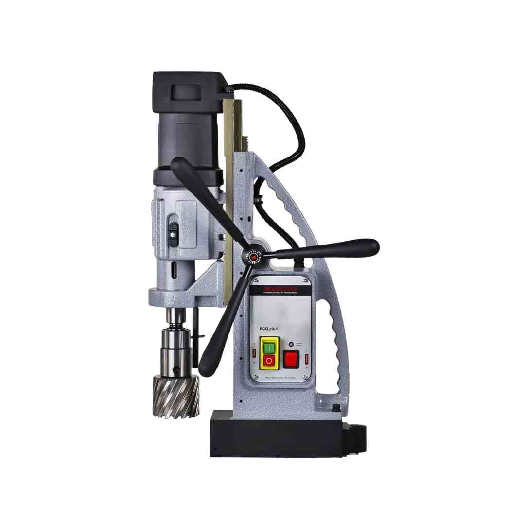 Magnetic Drill is a professional-grade drilling machine used for accurate drilling on steel and other ferrous metal surfaces. Equipped with a powerful motor and a strong electromagnetic base, it ensures stability and precision during drilling, even on vertical or overhead surfaces. The adjustable feed and safety features provide controlled operation and protect both the operator and the workpiece. Ideal for fabrication workshops, construction sites, and industrial applications, this magnetic drill delivers reliable performance for demanding metalworking tasks.